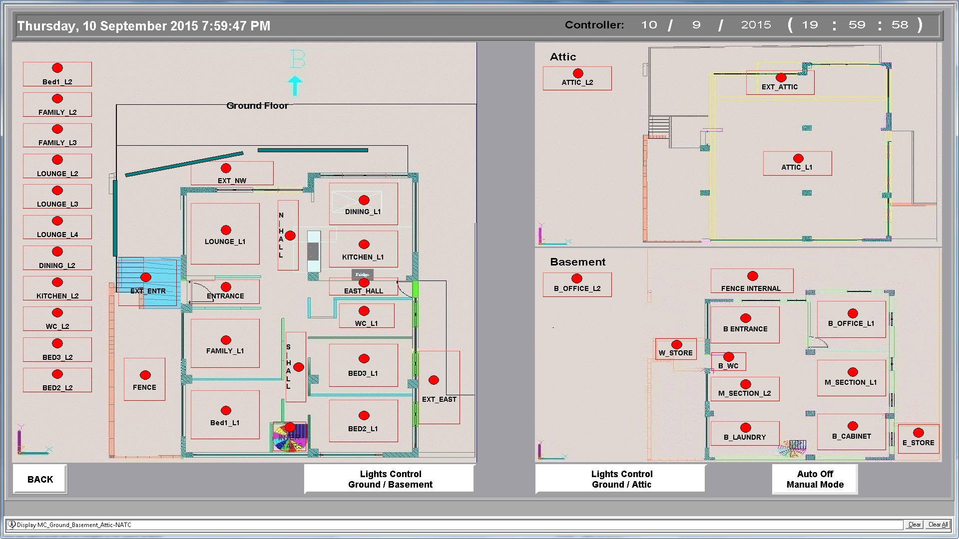 NATC System is a centralized control system which means all the inputs and outputs are wired to the controller of the system. The solution is an open source control system that allows you to connect any digital or analog device to control and secure your home. It provides home automation and security (control and monitoring) and improves the energy efficiency of your home, by doing so making your life easier. NATC system is based on controllers developed by world leading automation manufactures; Allen Bradley – Rockwell, Siemens and Omron. NATC system is an open control system, which means it is vendor independent and can be connected to any input such as light switches, photo sensors, PIRs, proximity switches, modem signals, room thermostats, thermocouples and basically any digital or analog input device. Based on the input signal the controller can control any digital or analog device such as lights, electrical operated doors, curtains, alarm output devices, heating system or units, awnings, surveillance systems, etc. The control system is expandable and connect to multiple controllers via Modbus or Ethernet network. It can be installed in most of the old houses by modifying and extend the wiring of the house. Electrical installation drawing is provided. The controllers are industrial rated and are widely available on the market, which makes the system robust and reliable.
